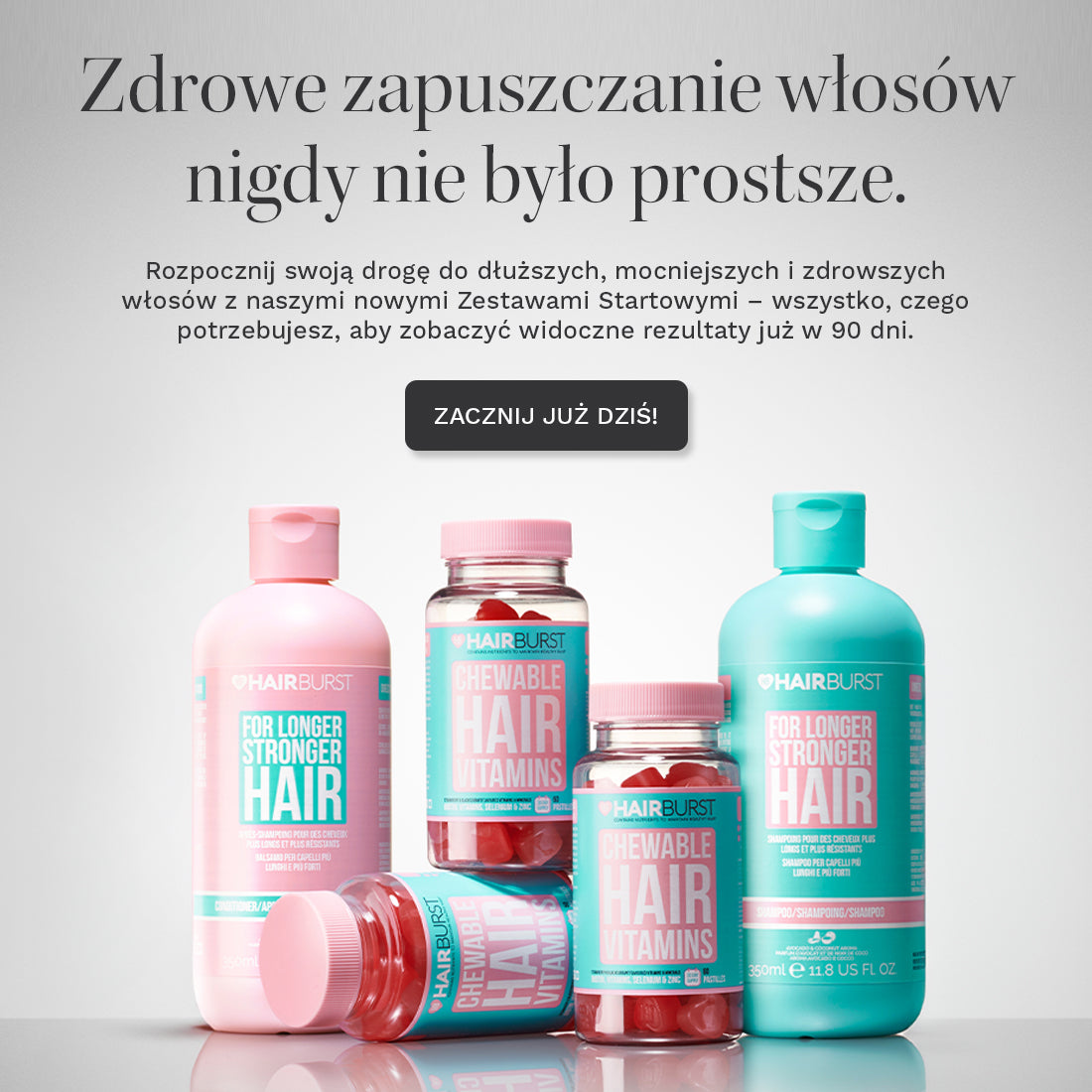 Nasze witaminy działają od wewnątrz, a ich formuły zostały naukowo opracowane we współpracy z certyfikowanymi, wiodącymi w branży producentami, aby zapewnić wszystkie kluczowe składniki sprzyjające posiadaniu dłuższych i zdrowszych włosów.